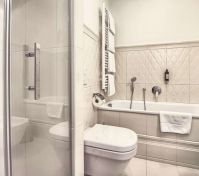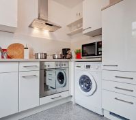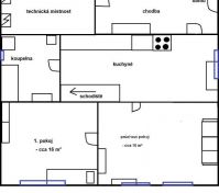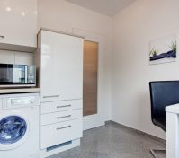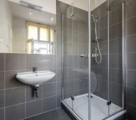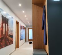 Čtyři prostorné, oddělené pokoje, dvě moderní, nové koupelny ( vana, s prchový kout ), dvě wc a nová kuchyně ve vstupní hale.