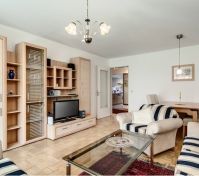 Byt nabízí prostorný obývací pokoj, velkou ložnici s manželskou postelí a vestavěnými skříněmi, kuchyň s jídelním koutem, vstupní halu, koupelnu s vanou a umyvadlem a samostatné WC. Moderní, ale komfortně zařízený byt poskytuje příjemný pocit bydlení. Zařízení je kompletní, vše… více informací o pronájmu bytu